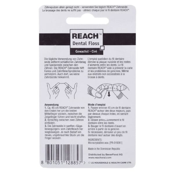 Dental professionals recommend using dental floss regularly to remove more plaque than brushing alone. With REACH Dental Floss, you can rely on the Swiss gold standard for dental floss. REACH Dental Floss enables effortless interdental cleaning and has been used by Swiss dental professionals for decades as the preferred product for cleaning interdental spaces. Trust the experts – trust REACH™ as the specialist for interdental spaces.