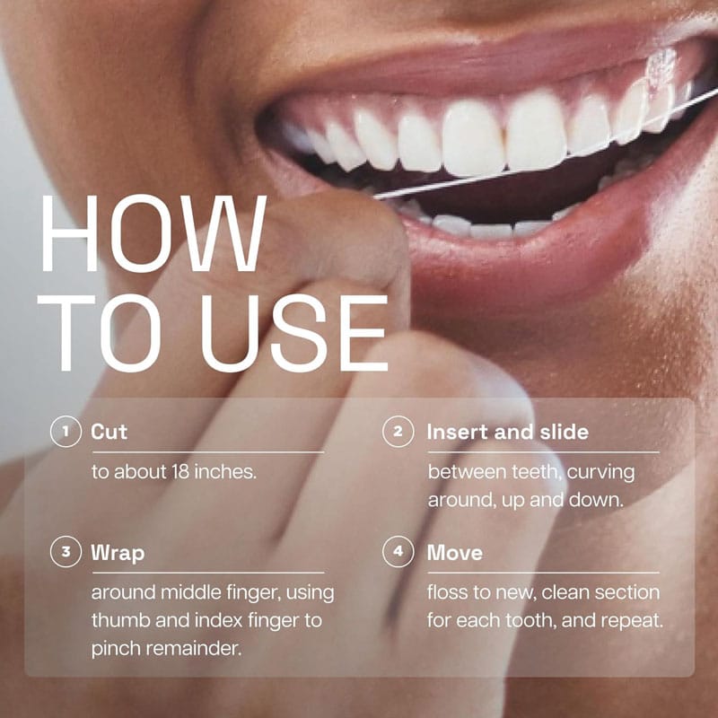 3. move the dental floss away from the gums in gentle “sawing movements”. Wrap a new, unused piece around the fingers as required.