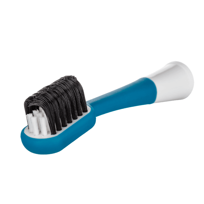 CleanCurl 3D a été développé en collaboration avec des dentistes – pour tous ceux qui ont du mal à se brosser les dents correctement avec les accessoires traditionnels. Les poils incurvés épousent délicatement la forme des dents et servent de guide à la main, comme le mécanisme d’un train qui se déplace le long d’un rail.