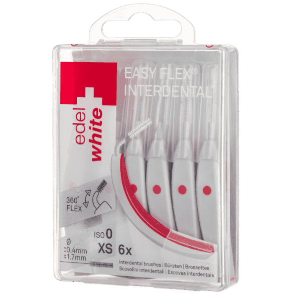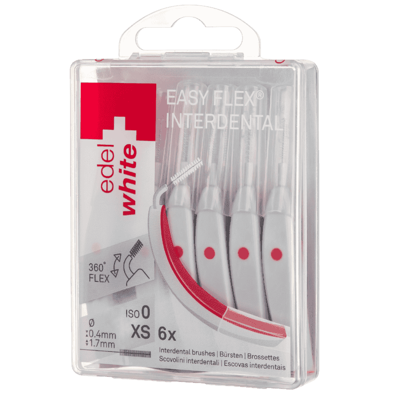 Warum eine gerade Interdentalbürste verwenden, wenn der Kiefer doch gekrümmt ist? Das war der einfache Gedanke, der die Entwicklung von EasyFlex auslöste: Eine gebogene Bürste, die sich flexibel an die Form deines Kiefers anpasst. Noch nie war die Interdentalreinigung so einfach, bequem und gründlich. Der gebogene Griff und der flexible Hals ermöglichen eine mühelose Reinigung zwischen jedem Zahn – auch zwischen den hinteren Backenzähnen.